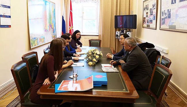 圣彼得堡市政府市长助理兼外联委副主席扎泽耶夫先生代表尼古拉耶维奇市长热情接待我公司王董事长一行