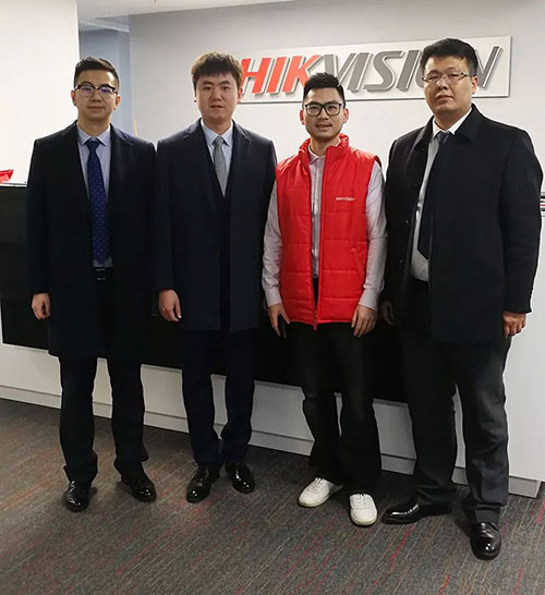 海康威视俄罗斯公司负责人与我公司董事长助理李宇锋、技术总监张鸿、运营总监李晓强合影